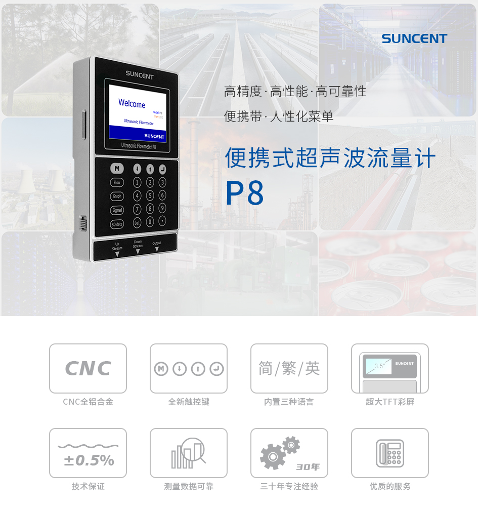 P8是新款的全功能便攜式超聲波流量計(jì)